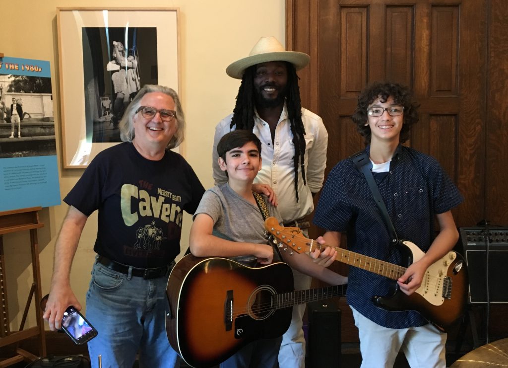 (pic: Band Aid student Casey, Band Aid Director James Mays, MMMF Director Julie Frost, and MMMF volunteer Hudson)